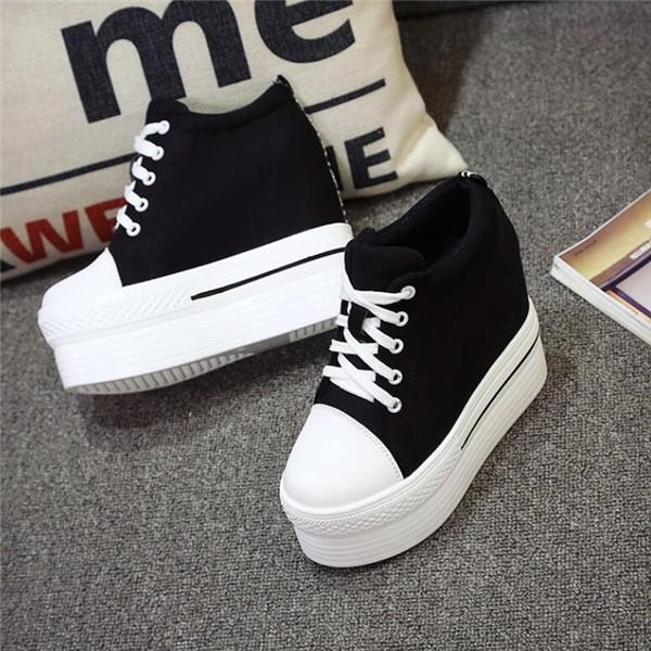 Amazon かわいい 厚底 ヒール キャンバス インヒール レースアップ スニーカー レディース 黒 シークレット シューズ カジュアルシューズ 6cm クッション ハイカット 歩きやすい 滑り止め 通学 通勤 厚底靴 履きやすい 快適 スニーカー